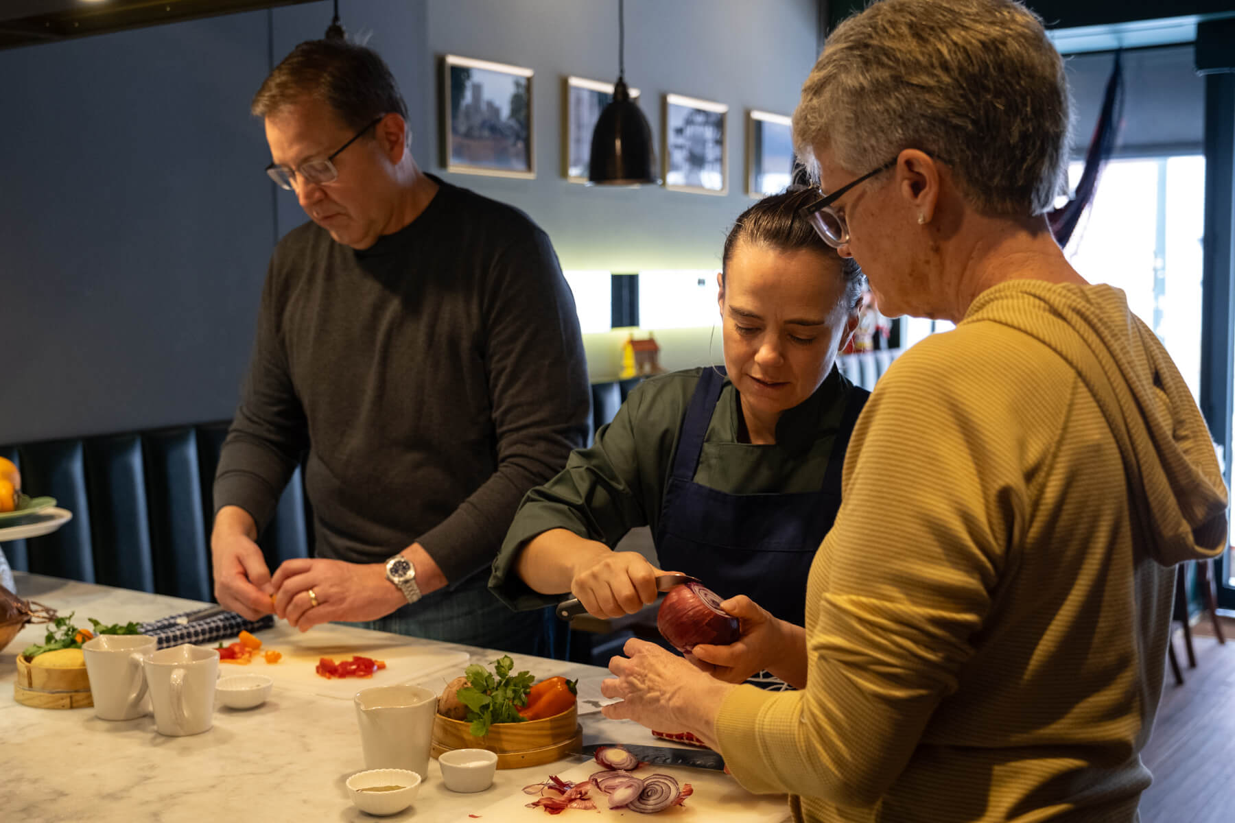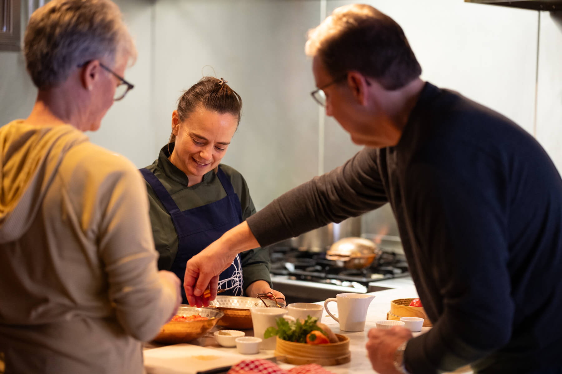 Step-by-step guidance to prepare a delicious 3-course meal (get personalized tips, share stories and laughs as your chef cooks with you)
